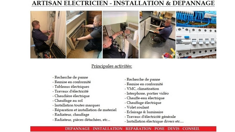 - Remplacement matériel électrique, y compris disjoncteur et différentiel